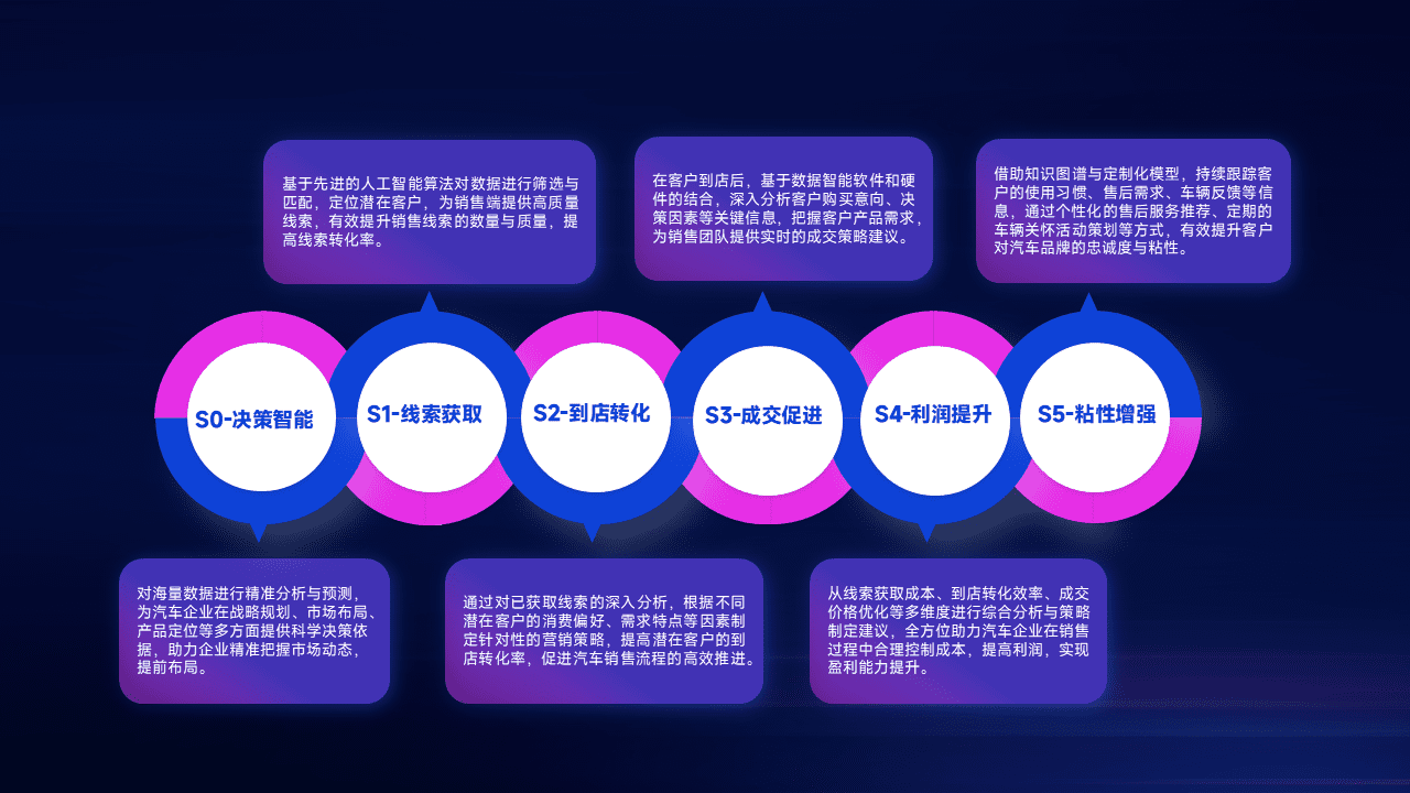 通过拓宽潜在客户来源、、优化线索分配并提高到店转化率,,以增强销售效率。。。。同时,,,,利用线索数据不断优化分析模型,,,,有效提升转化率,,,扩大营销影响力。。